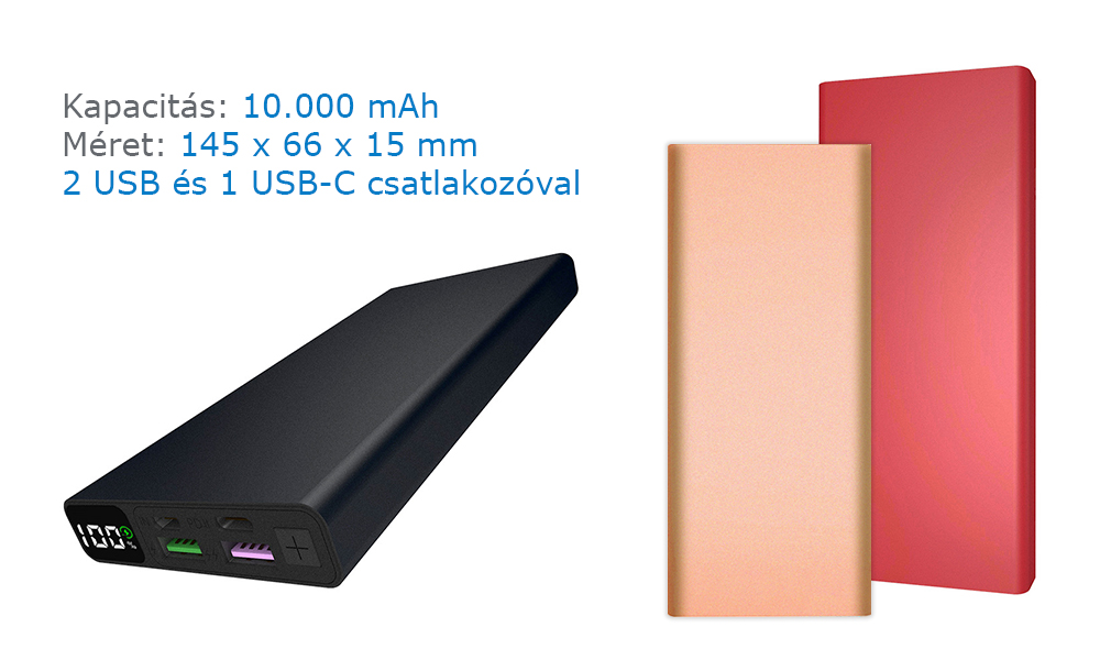 Ma, az okostelefonok és okoseszközök világában a legnagyobb gondot az akkumulátorok gyors lemerülése okozza. Egy telefon üzemideje maximum 1 nap, de egy akciókameráé csak pár óra. Erre problémára jelent kiváló megoldást az általunk gyártott powerbank, hiszen ezzel a hordozható energiaforrással bármikor, bárhol energiához juttathatja az eszközeit. Az általunk gyártott powerbankeket kizárólag A+, valós kapacitású akkumulátorokkal szereljük, így egy megbízható, akár évekig használatban lévő, igazán hasznos, minőségi ajándékkal lepheti meg partnereit.